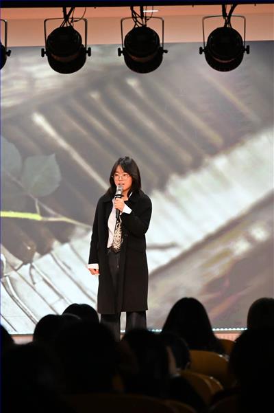 教师配音秀与学生漫才笑点密集,欢笑不断;小品与 “开杠” 环节也裹着生活趣味与思辨火花,持续点燃现场氛围;乐器演奏节奏激越、气势磅礴,明快的旋律瞬间将现场气氛推向鲜活热烈;话剧演绎则以真挚演绎重现峥嵘过往,赤诚的家国情怀叩击人心,让全场沉浸在热血与感动之中。